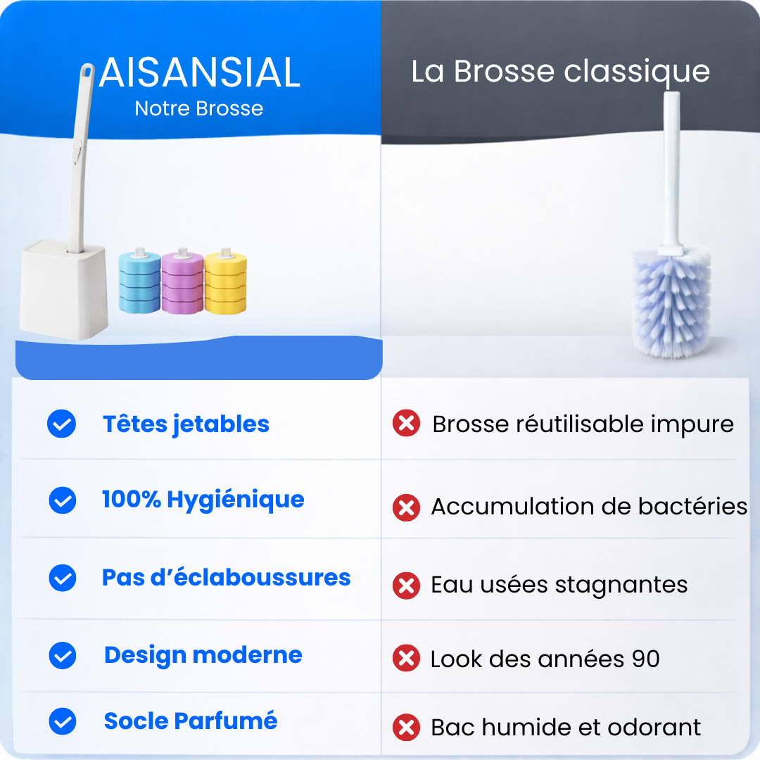 Découvrez une la brosse Aisansial : simple, propre, rapide et parfaitement hygiénique. Fini la corvée des brosses traditionnelles qui traînent et deviennent sales avec le temps. Dites bonjour à une propreté impeccable à chaque utilisation